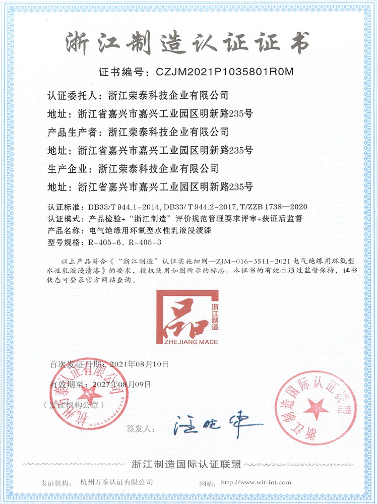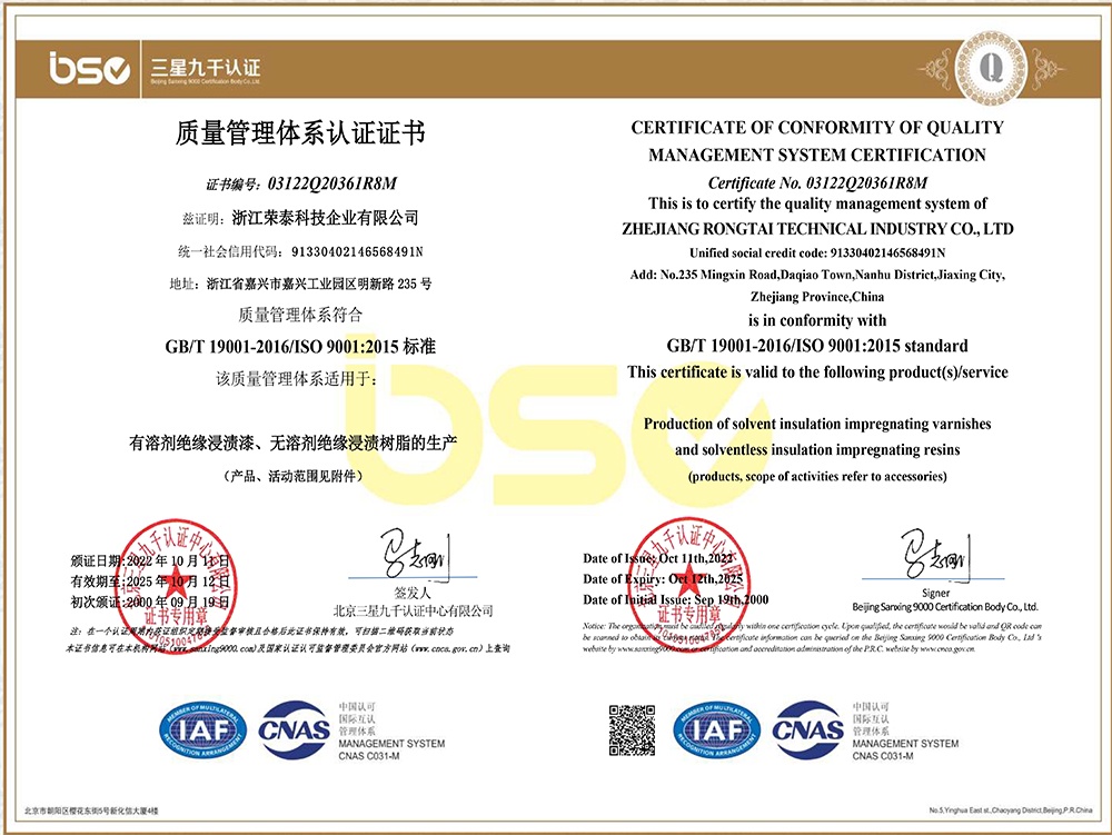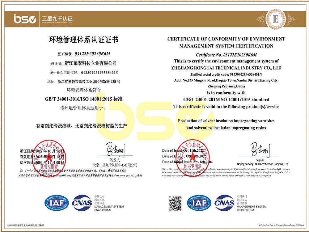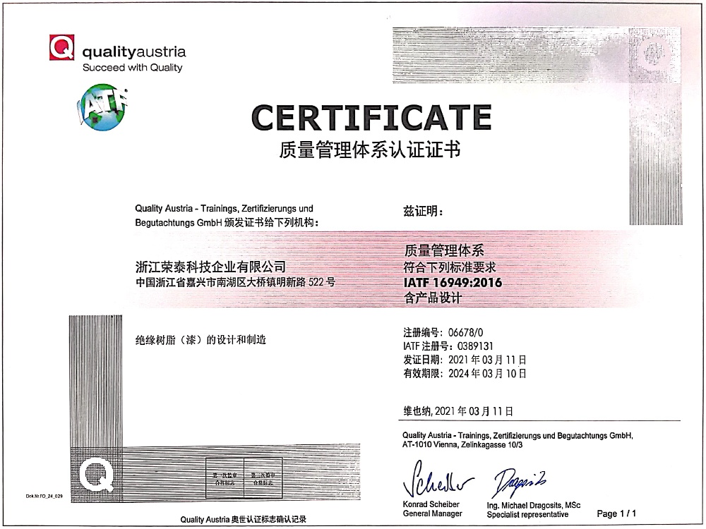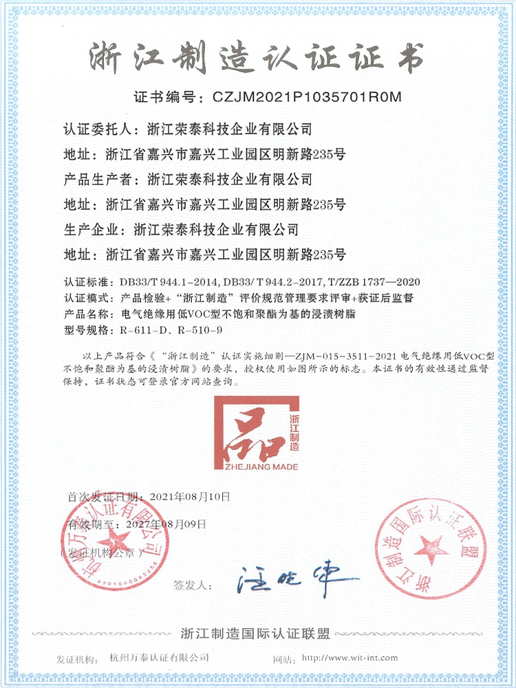 • 浙江榮泰科技企業(yè)有限公司為專業(yè)生產(chǎn)高性能絕緣材料的國家高新技術(shù)企業(yè)、國家“小巨人”企業(yè),為國內(nèi)最大?的絕緣漆生產(chǎn)商,全國絕緣材料行業(yè)協(xié)會的副理事長單位,規(guī)模、產(chǎn)品技術(shù)和創(chuàng)新能力處于同行業(yè)領(lǐng)先地位。